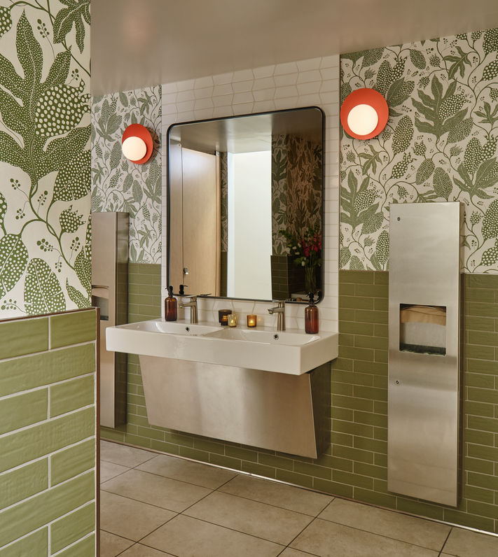 "Working with Rose Design was such a fun and creative process. Andie and I were captivated and inspired by all of Carly's suggestions for our restroom design—from the wallpaper down to the grout, everything was thoroughly thought out. The team was always very responsive and took our suggestions to ultimately create our new favorite space in our building. We are so happy that the restrooms feel like an extension of our original space while adding so much warmth and character with the colors and design. Our guests have also complimented how beautiful and open it feels. We are so happy to have had the opportunity to work alongside Carly and her team." - Ram Olivares, Farming Hope